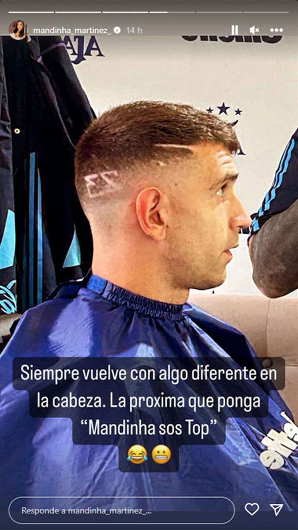 Mandinha Martínez, su esposa, publicó varias historias en su cuenta de Instagram, mostrando el nuevo look del arquero de la Selección argentina.