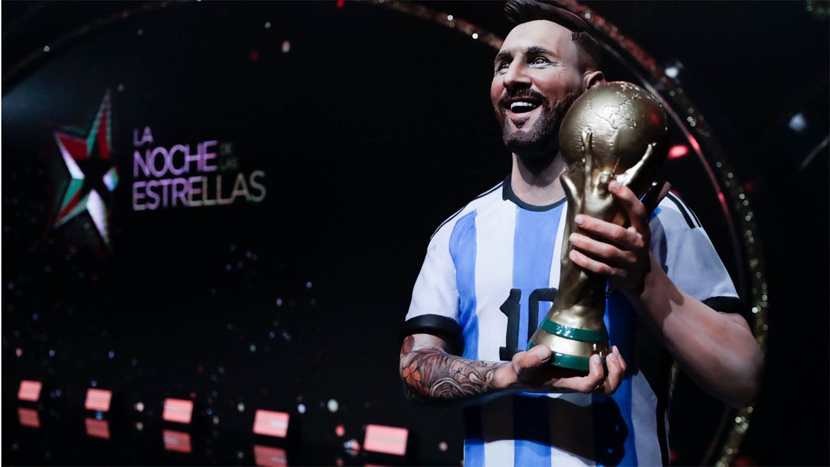 Por último, con la presencia del número diez de la Argentina, se descubrió la estatua a escala real de "La Pulga" con la Copa del Mundo -que estará en el museo de la Conmebol junto a las de Pelé y Maradona- y se le entregó un bastón, símil al presidencial y diseñado por Adrián Pallarols, como "rey del fútbol mundial".