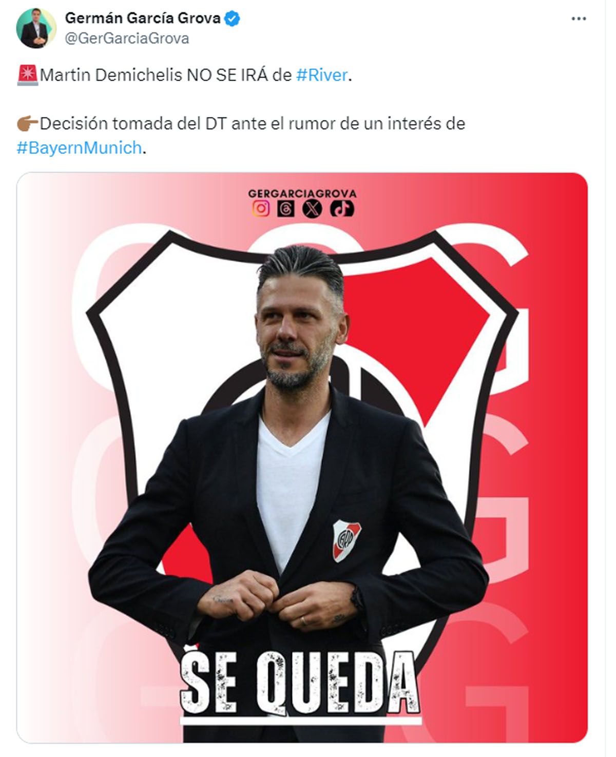 El futuro del Martín Demichelis, actual DT de River, captó la atención de la prensa alemana, que lo posiciona como el candidato a dirigir al Bayern Munich