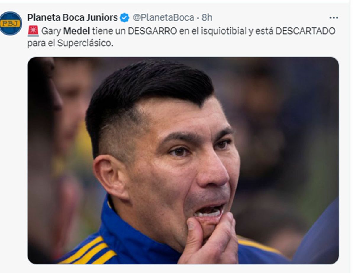 El defensor Gary Medel complicó a Boca. El chileno tuvo un desgarro en el isquiotibial izquierdo por lo que no estará en el cotejo del sábado ante Racing por la decimocuarta fecha de la Liga Profesional y además, quedó descartado para el Superclásico ante River de la próxima fecha.