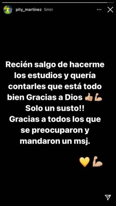 En un primer momento y tras los primeros estudios, el Pity Martínez había dicho en sus redes que solo había sido un susto.