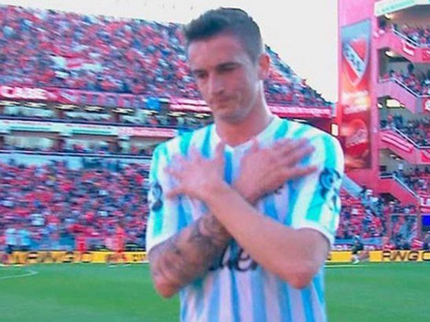 El futbolista de Racing se retiró abucheado en el estadio del Rojo y le dedicó a los hinchas una seña que podría derivar en sanción. Mirá el video.