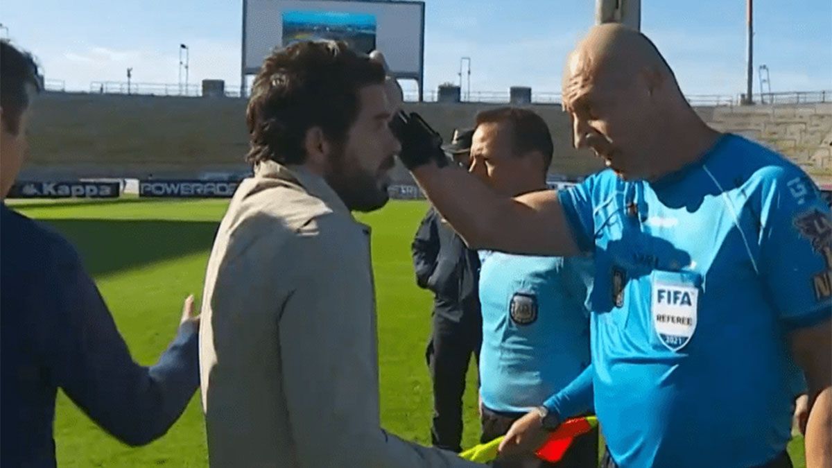 "Bueno, andá", le dijo Pitana, quien no se achicó ni muchos menos. Mientras el ex volante de Boca Juniors y Vélez se iba, Mariano Viale, uno de los asistentes tiró: "4 a 1 salieron". Luego el DT del Tiburón se enojó más, se dio vuelta y le dijo: "¡¿Cómo?!".