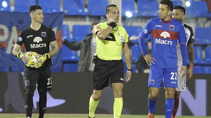 El árbitro mendocino Fernando Espinoza generó un instante de suspenso al consultar con su asistente, algo muy parecido a lo que ocurre cuando los jueces solicitan por el VAR.