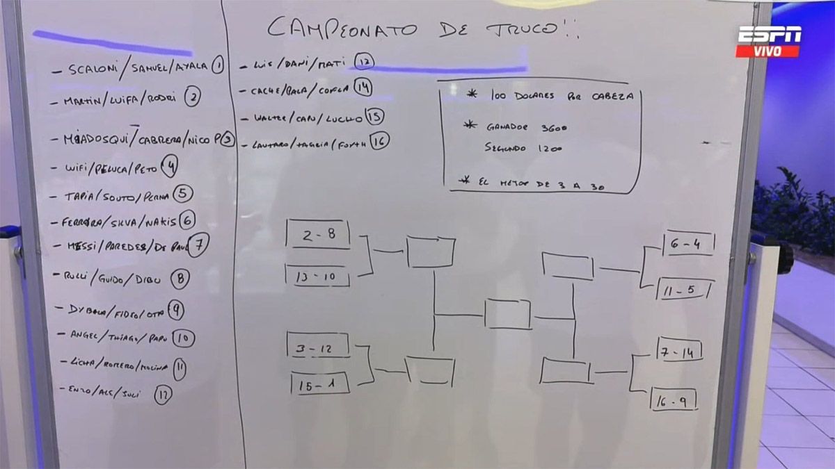 En las redes sociales se hizo viral una planilla, donde se puede apreciar los equipos del torneo de truco, siendo en que componen Lionel Messi, Rodrigo De Paul y Leandro Paredes, el gran candidato a ganarse el premio mayor.