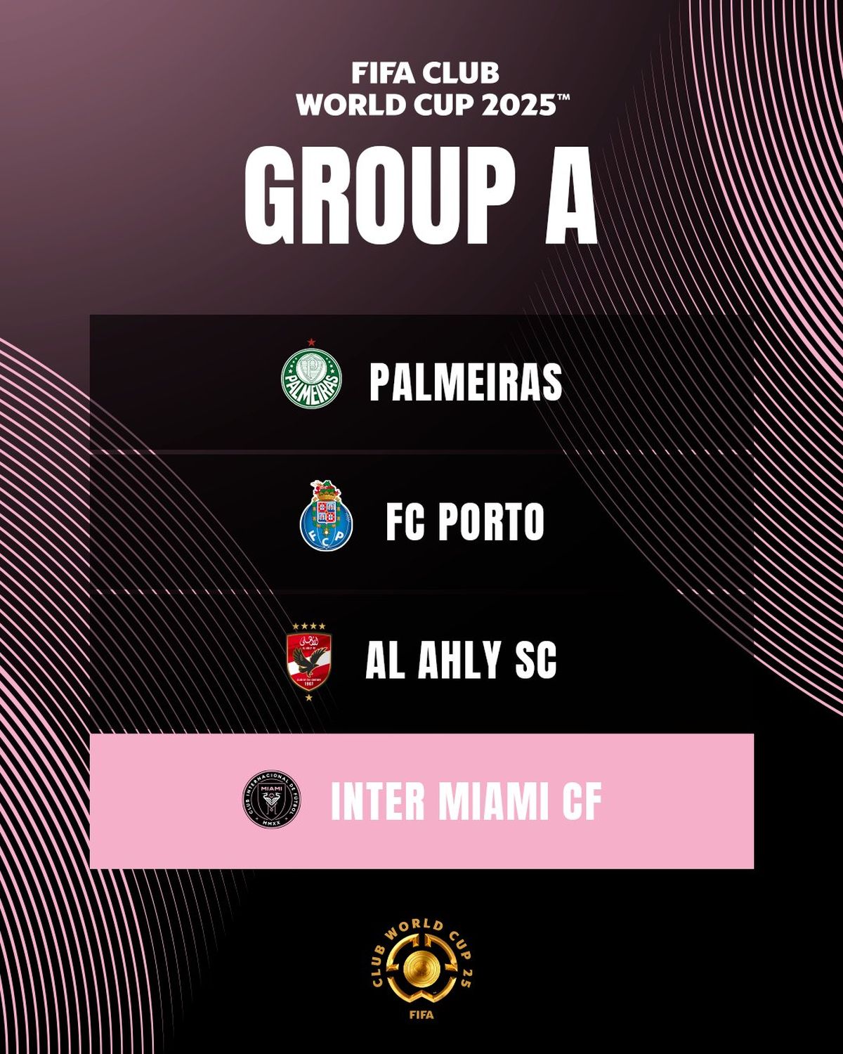 El ahora equipo de Javier Mascherano, que dirá presente en la cita que tendrá lugar en Estados Unidos entre el 15 de junio y el 14 de julio del próximo año, forma parte del Grupo A. Sus rivales serán Palmeiras (Brasil), Porto (Portugal) y Al-Ahly (Egipto).