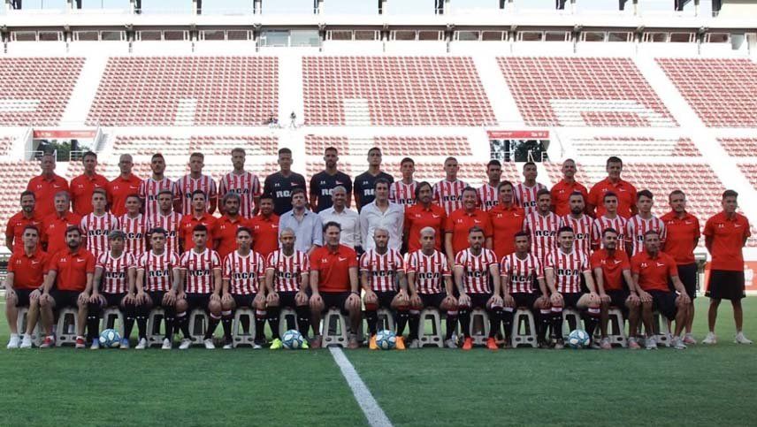 El plantel de Estudiantes realizó la foto institucional en el estadio de la calle "Uno", donde se presentó la nueva casaca, mientras toda la dirigencia se mantiene expectante ante la posibilidad del regreso al club de Marcos Rojo.