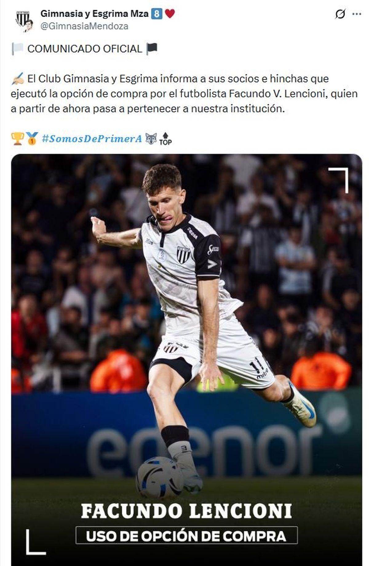 Lencioni, que nació en Rafaela, completó una temporada consagratoria en Gimnasia, ya que no solo jugó 36 partidos sino que fue el goleador con 10 tantos, aportó 6 asistencias y hasta marcó uno de los penales en la final donde el Mensana logró el ascenso.
