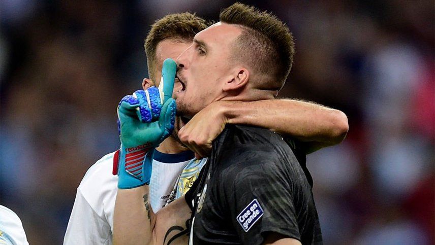 El arquero de la Selección argentina, Franco Armani, evitó polemizar sobre su gesto cuando atajó el penal ante Paraguay, en el que se tapó la boca con un dedo con el gesto clásico de pedir silencio.