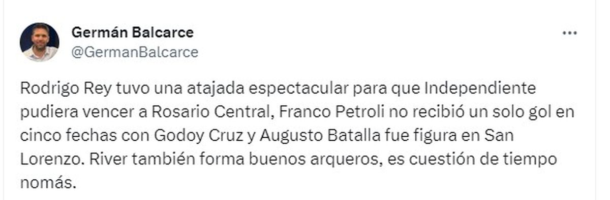 Franco Petroli, nacido hace 25 años en Santa Fe, se inició en River donde no llegó a jugar oficialmente y luego fue cedido a Estudiantes de Río Cuarto donde sólo le hicieron 12 goles en 23 partidos (13 vallas invictas).