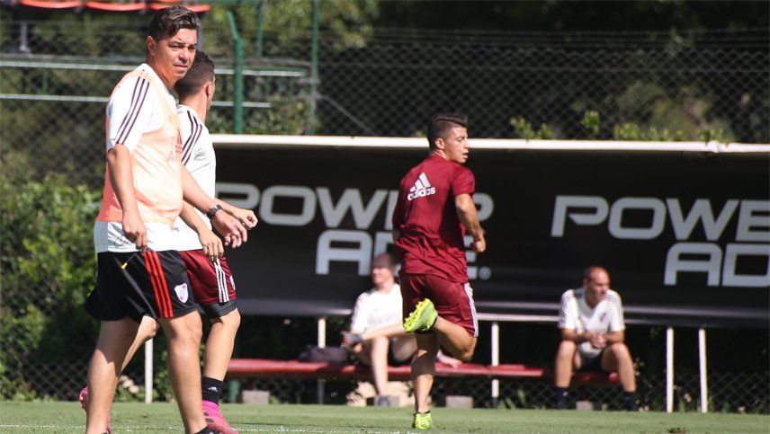El entrenador de River Plate, Marcelo Gallardo, realizó trabajos con pelota en el predio de Ezeiza sin mostrar la formación titular, aunque se espera que repita el equipo que viene de ganar en Mendoza por 1-0 frente a Godoy Cruz que lo llevó a la punta de la Superliga.