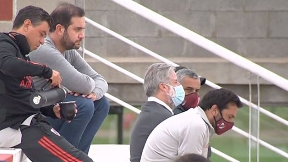 Tras arribar a Ezeiza en la madrugada, el Muñeco asistió al partido de Reserva de River, en un duelo atrapante ante Argentinos Juniors, donde el Millo se impuso 1-0.