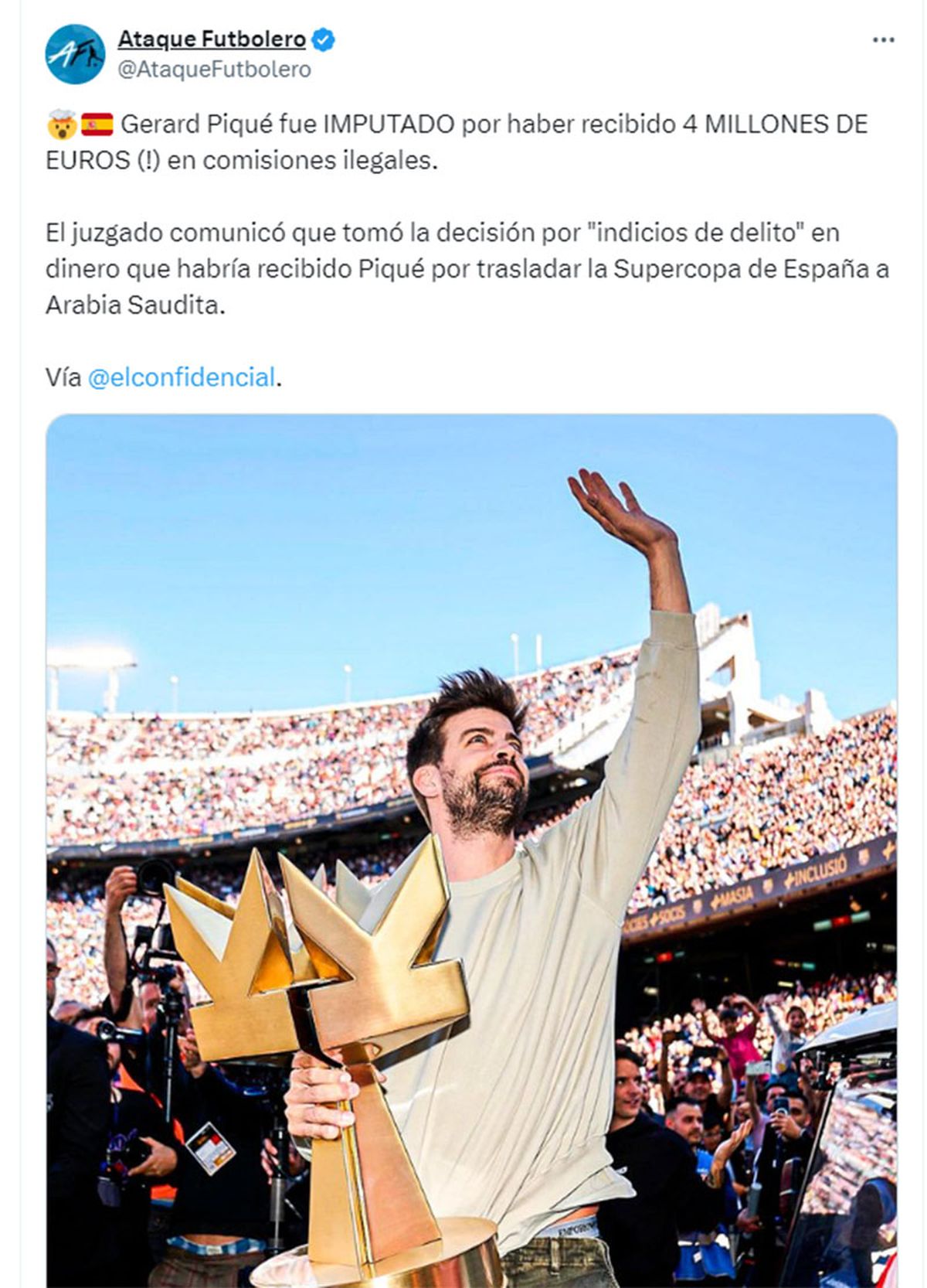 El exjugador del FC Barcelona Gerard Piqué está en problemas. El ex defensor blaugrana fue imputado por su presunta implicación en pagos ilegales en el traslado de la Supercopa de España a Arabia Saudí.
