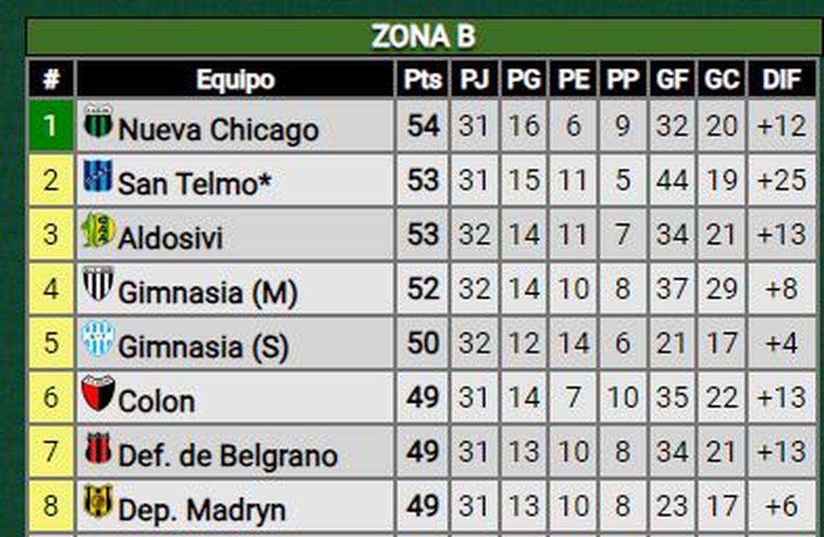 Además, si San Telmo supera a Deportivo Madryn llegará a los 56 puntos, mientras que Aldosivi le ganó este sábado al Deportivo Morón y superó al Lobo ya que se ubicó 3ro con 53 unidades.