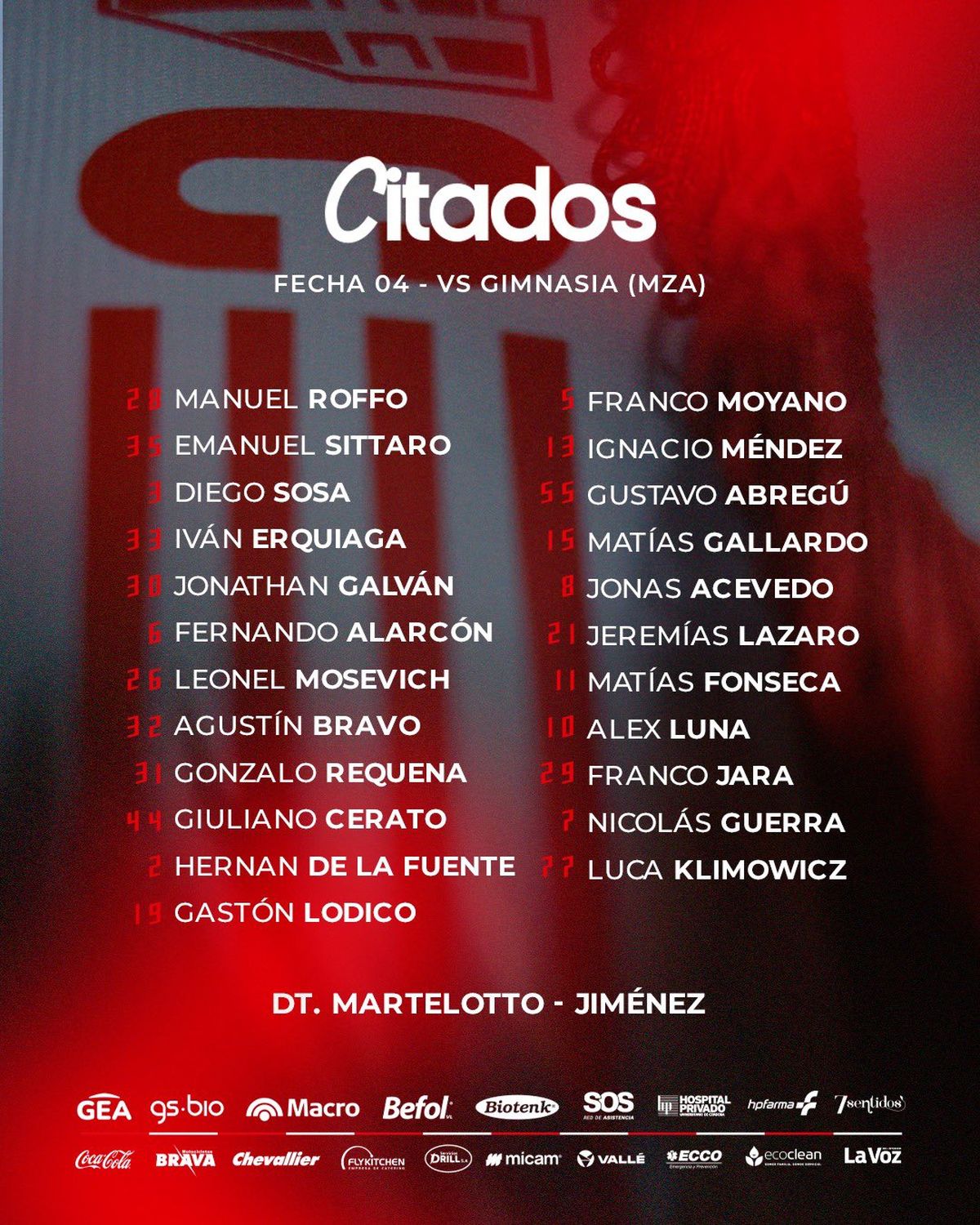 Gimnasia y Esgrima: César Rigamonti; Luciano Paredes, Ezequiel Muñoz, Imanol González, Matías Recalde; Ulises Sánchez, Nicolás Linares, Fermín Antonini, Facundo Lencioni; Agustín Módica, Valentino Simoni. DT: Ariel Broggi.