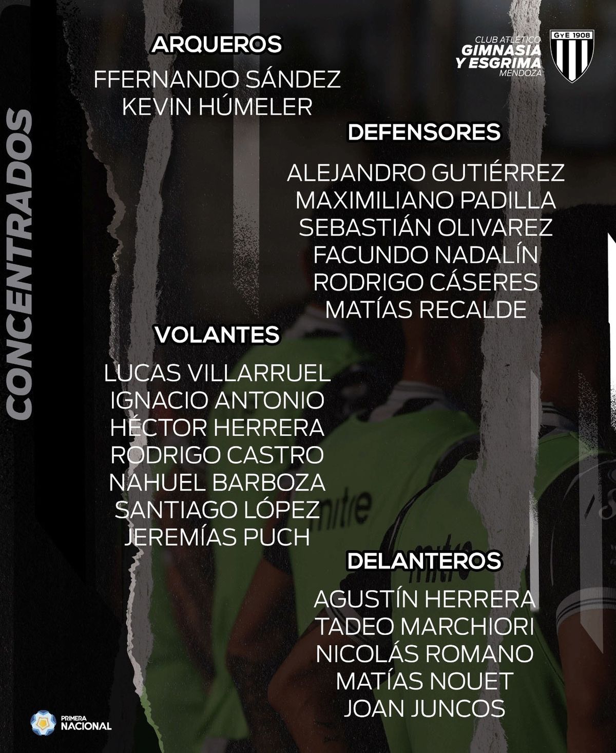 Gimnasia y Esgrima: Kevin Humeler; Facundo Nadalín, Rodrigo Cáceres, Maximiliano Padilla, Matías Recalde; Santiago López, Lucas Villarruel, Rodrigo Castro; Matías Nouet, Agustín Herrera y Nicolás Romano. DT: Joaquín Sastre.