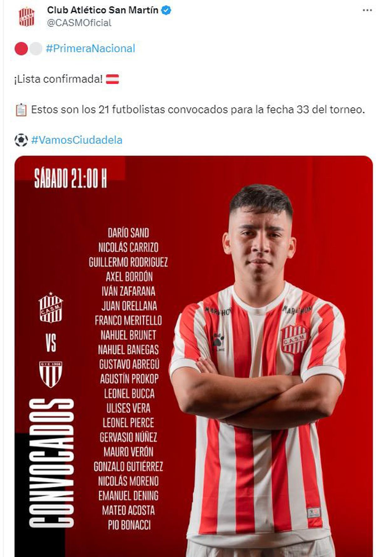 Gimnasia y Esgrima se enfrentará este sábado con San Martín de Tucumán, en la Ciudadela, por la 33ª fecha de la Zona A del torneo de Primera Nacional.
