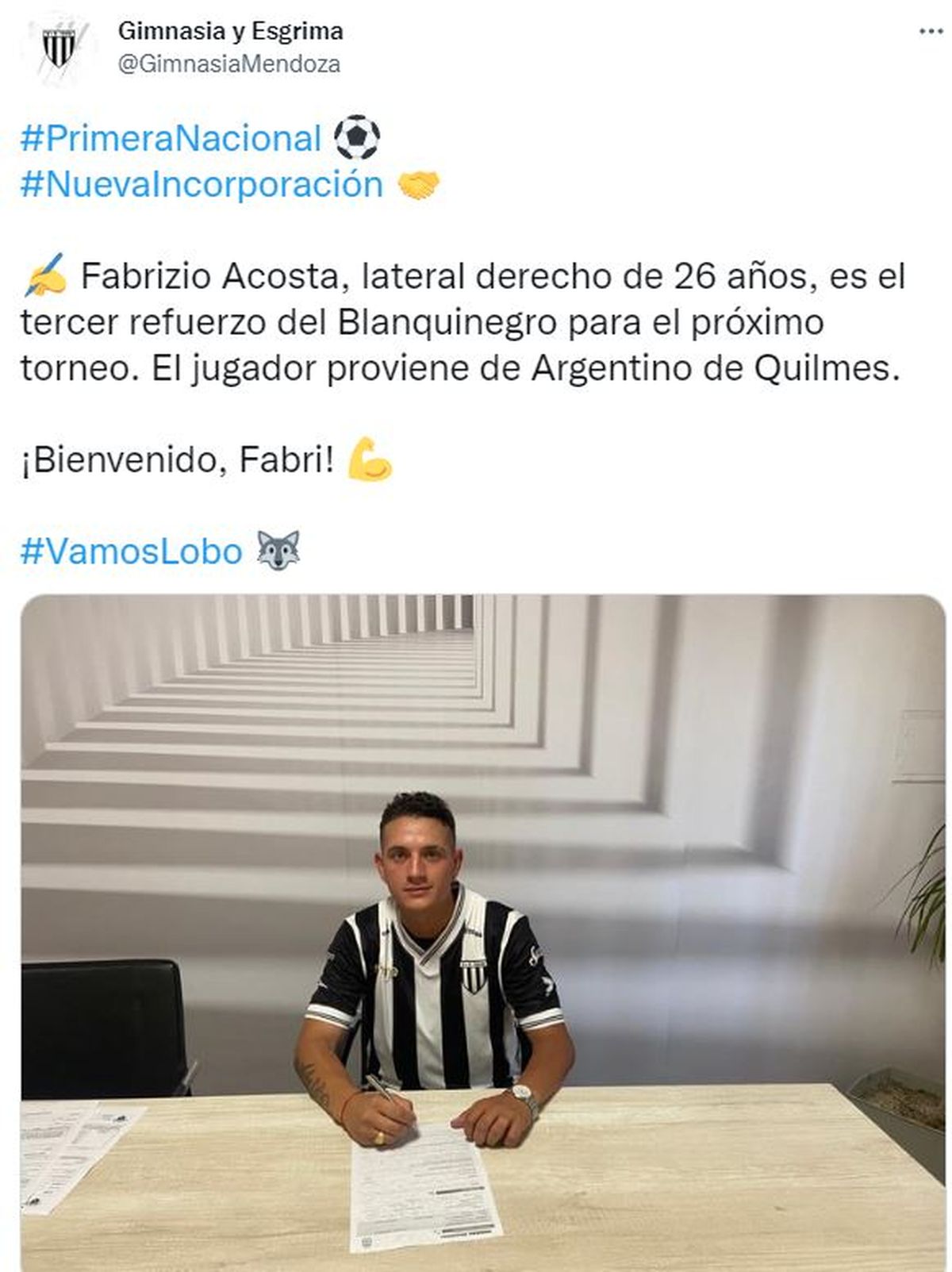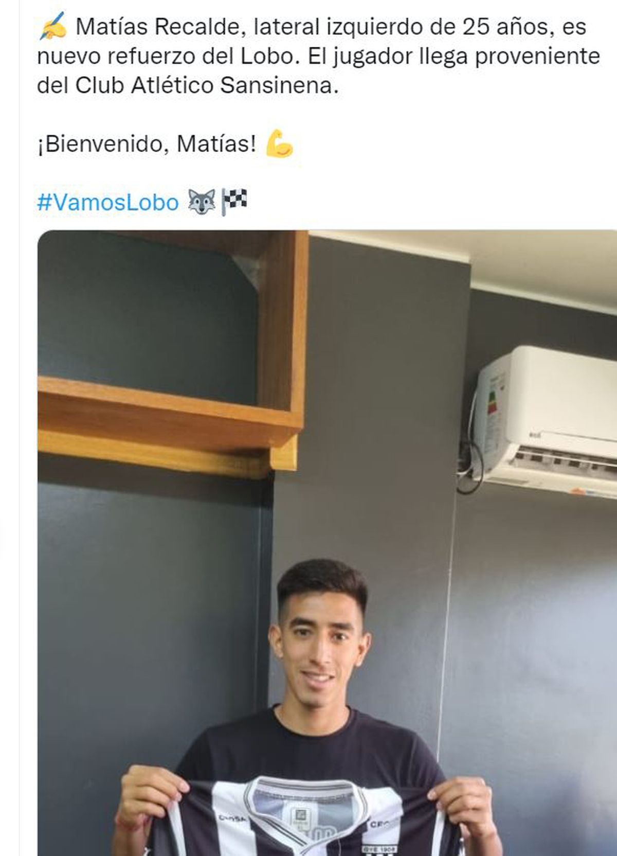 El defensor Matías Recalde, lateral izquierdo de 25 años, es nuevo refuerzo del Lobo. El jugador llega proveniente del Club Atlético Sansinena que milita en el Torneo Federal A.
