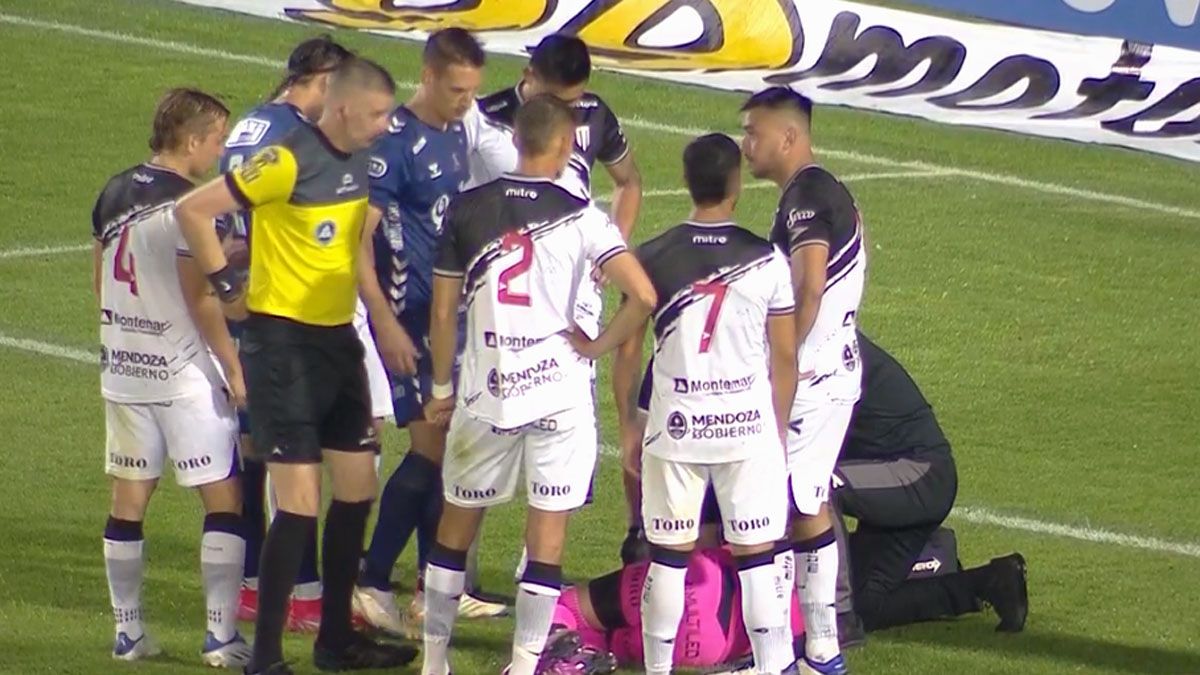 El árbitro José Carreras informó que hubo un estruendo y el arquero estaba mareado, por eso decidió la suspensión y elevará el informe correspondiente.