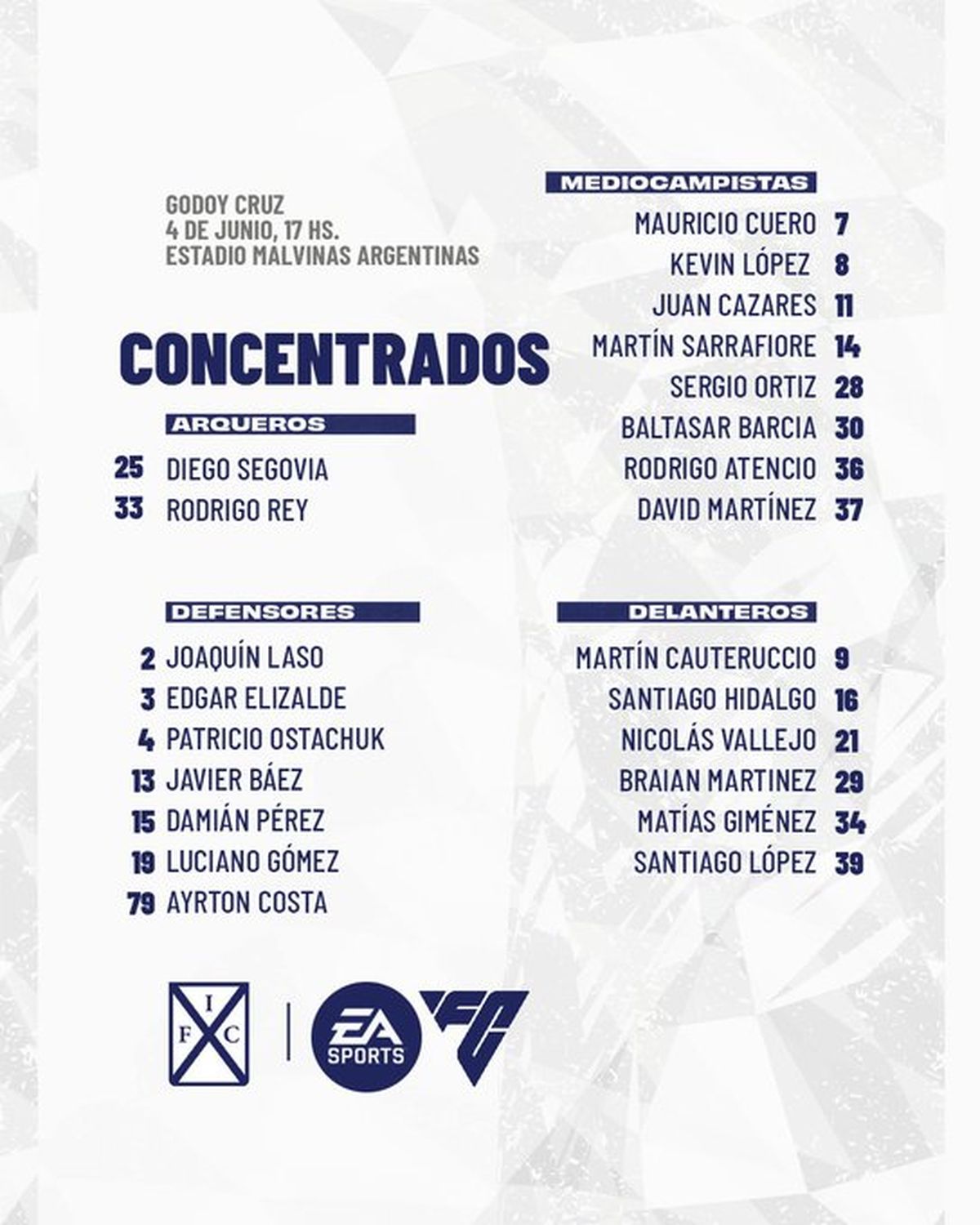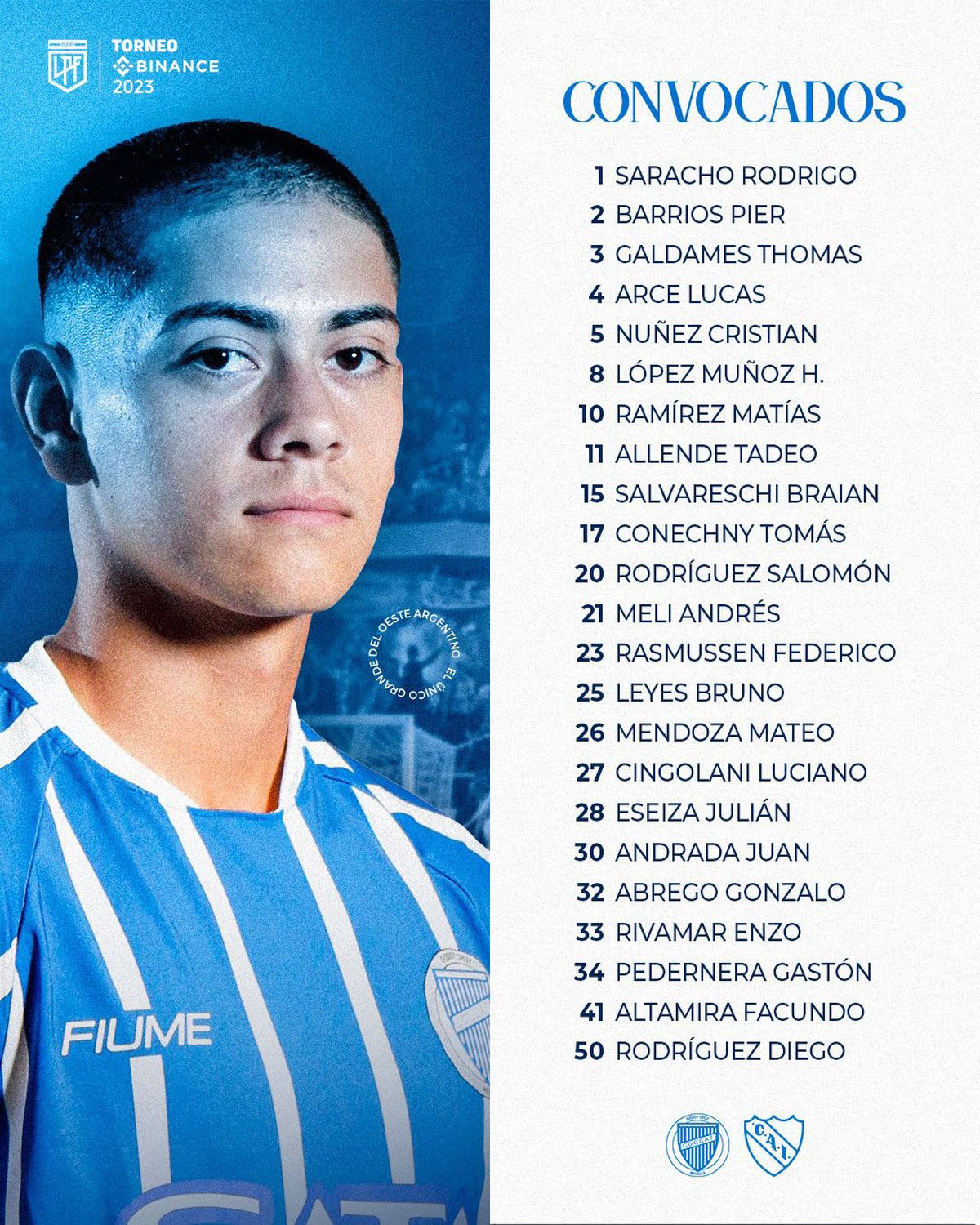 Godoy Cruz: Diego Rodríguez; Lucas Arce, Pier Barrios, Federico Rasmussen y Juan Andrés Meli; Gonzalo Abrego, Bruno Leyes, Tomás Conechny y Hernán López Muñoz; Tadeo Allende y Salomón Rodríguez. DT: Daniel Oldrá.