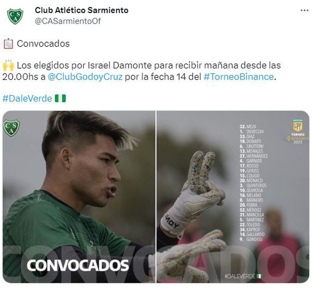 Godoy Cruz se medirá este jueves ante Sarmiento, en Junín, en un encuentro que se disputará en el estadio Eva Perón y corresponde a la 14ra. fecha de la Liga Profesional.