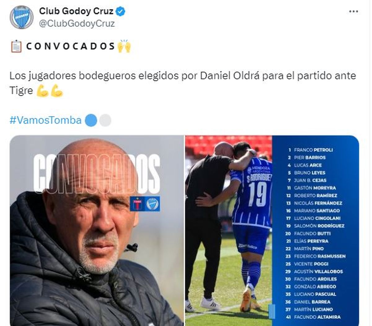 Godoy Cruz jugará de visitante ante Tigre este lunes desde las 19. El Tomba viene de ganarle de local a Argentinos Juniors y buscará sumar nuevamente de a tres