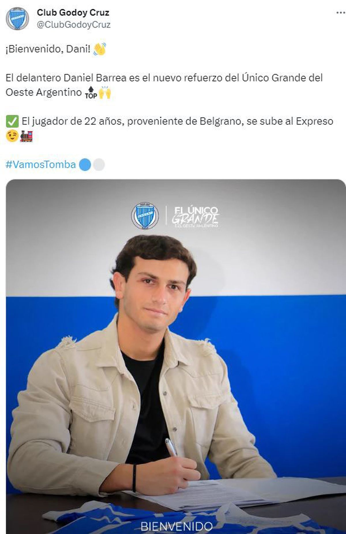 Godoy Cruz presentó en forma oficial a sus dos últimas incorporaciones para la Copa de la Liga Profesional. El Tomba -el equipo dirigido por Daniel Oldrá- debutó en el certamen con un triunfo ante Central Córdoba de Santiago del Estero, en el Malvinas Argentinas.