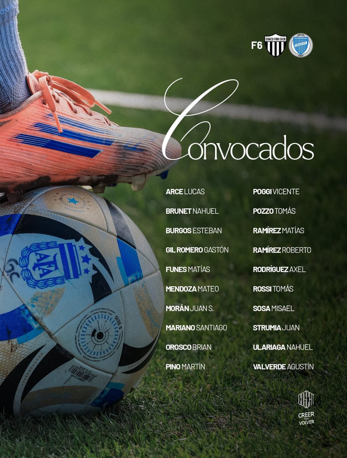 De cara a este encuentro, el cuerpo técnico definió una nómina de 20 jugadores convocados ya que además de los probables titulares fueron citados Juan Strumia, Esteban Burgos, Matías Funes, Tomás Rossi, Mariano Santiago, Orosco, Misael Sosa, Matías Ramírez y Axel Rodríguez.