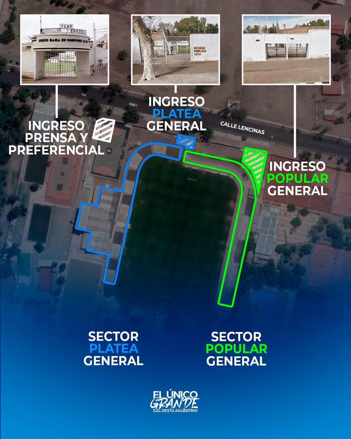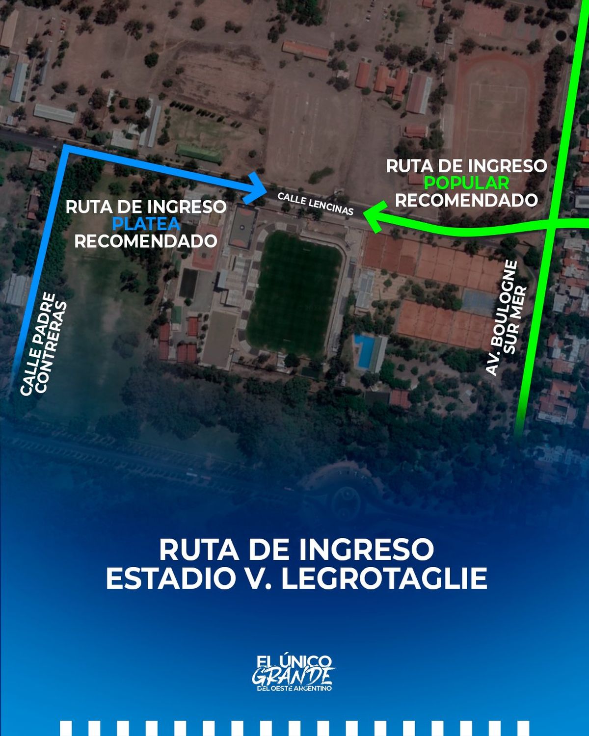 Respecto de los ingresos al estadio de Gimnasia y Esgrima se recomienda que quienes vayan a la Popular ingresen a calle Lencinas por Boulogne Sur Mer y los de la Platea General lo hagan por la calle Padre Contreras, en el Parque General San Martín.