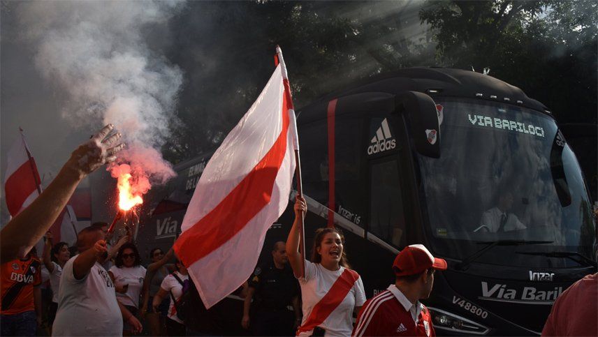 Los fanáticos de River llegaron con banderas y bombos, con bengalas y un aliento incansable no dejaron de cantar hasta que el equipo siguió a paso de hombre por la gran cantidad de gente su camino hacia Aeroparque.
