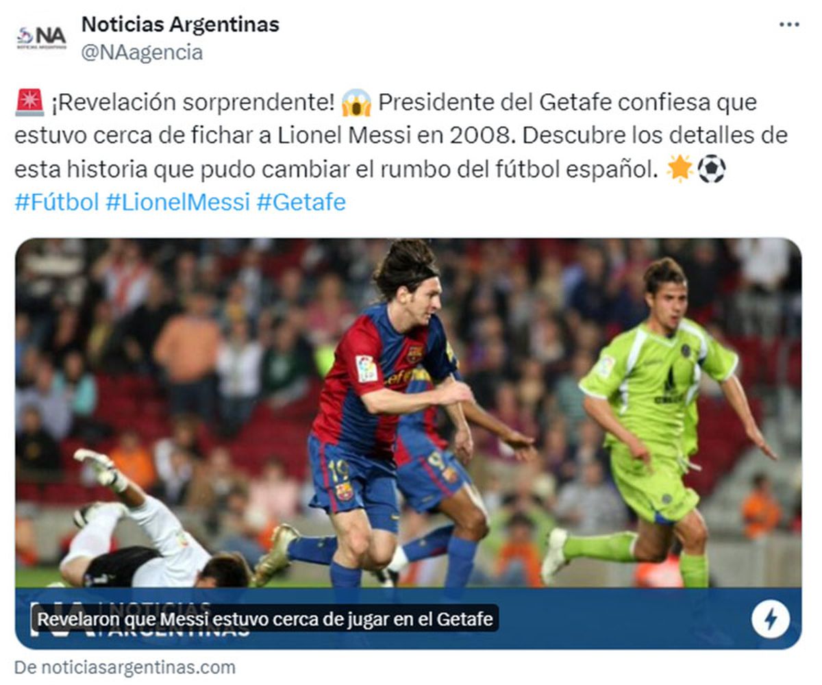 El interés de Getafe por Messi fue en 2008 y el máximo dirigente español confirmó que estuvo cerca de ser refuerzo: "Estábamos en Europa, fuimos al sorteo y estaba Txiki (Begiristain, actualmente director deportivo de Manchester City), que me dijo que estaban pensando para entrenar al Barça en (Michael) Laudrup y dije: ‘bueno, pues yo me llevo a Guardiola’”.