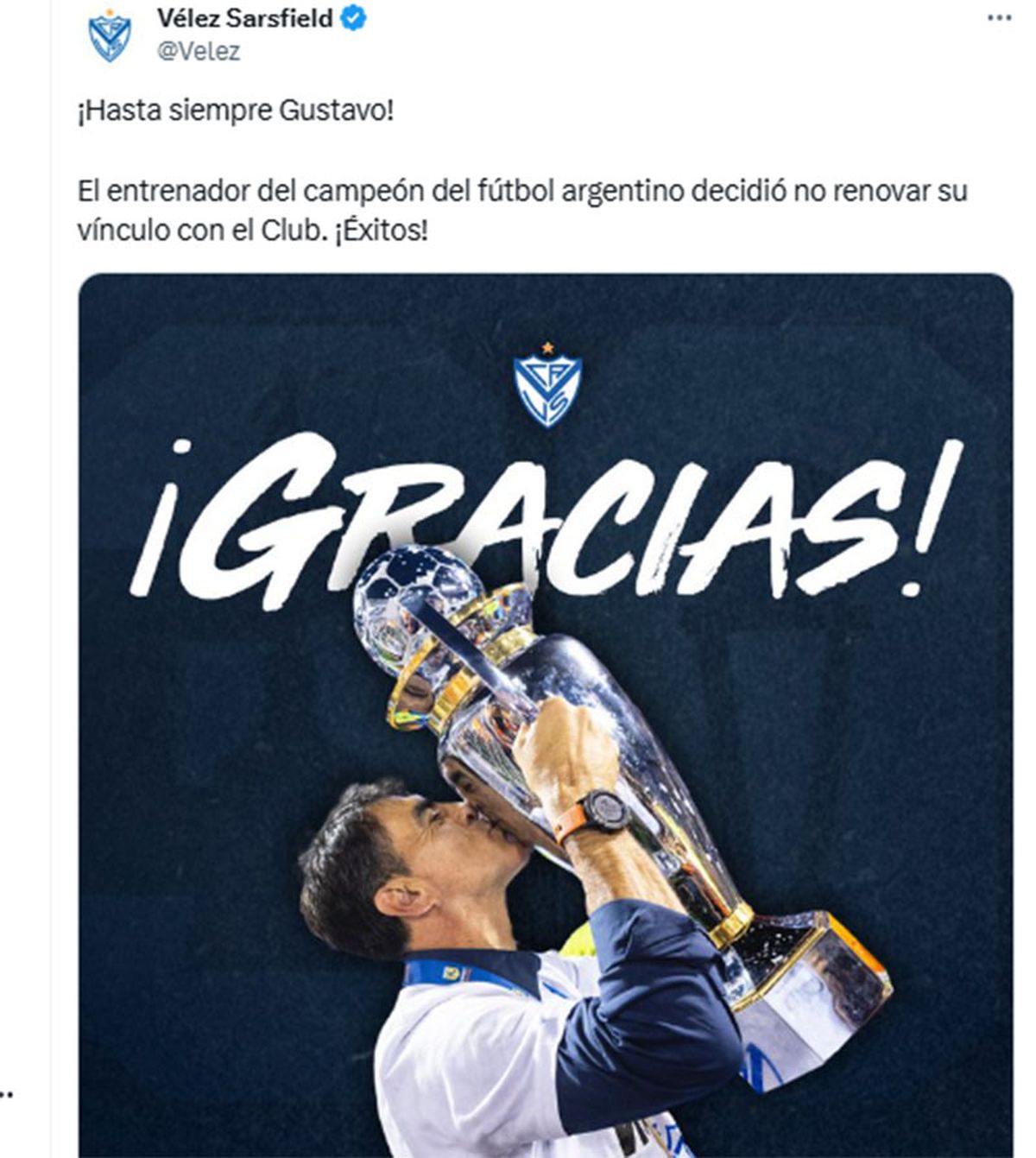 El entrenador argentino nacionalizado boliviano decidió no renovar su contrato con Vélez que tenía vigencia hasta el 31 de diciembre de este año, después de firmar por un año tras haber llegado a fines del 2023.