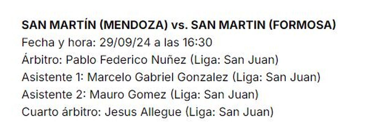 Mientras que el Atlético San Martín recibirá en el Este a San Martín de Formosa el domingo desde las 16.30, con el arbitraje del sanjuanino Pablo Núñez.