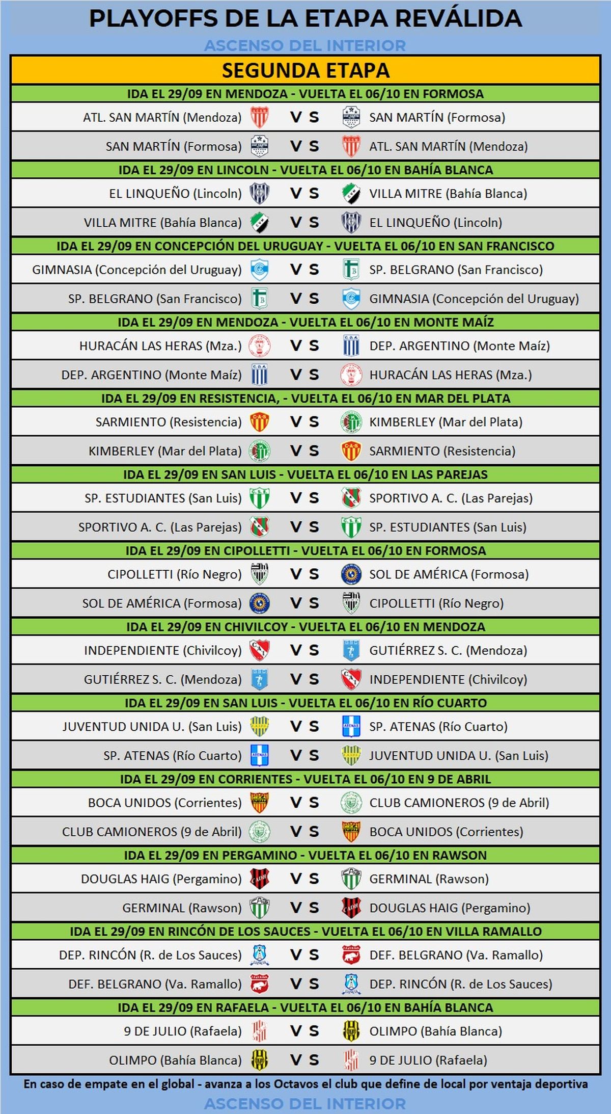 Desde ahora cada paso será con eliminación directa en partidos de ida y vuelta y mientras el Celeste jugará el sábado 28, el Globo y el Chacarero jugarán sus respectivos partidos el domingo 29.