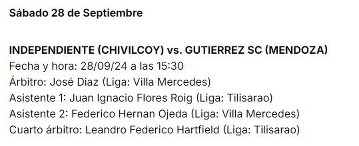 El primero de los tres mendocinos en salir a la cancha será Gutíerrez Sport Club que disputará el partido de ida este sábado desde las 15.30 como visitante ante Independiente de Chivilcoy, con el arbitraje de Jose Díaz de Villa Mercedes.