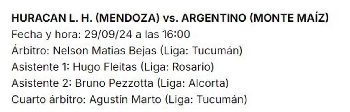 Huracán Las Heras jugará el domingo desde las 16 en calle Olascoaga ante Argentino de Monte Maíz, con el arbitraje del tucumano Nelson Bejas.