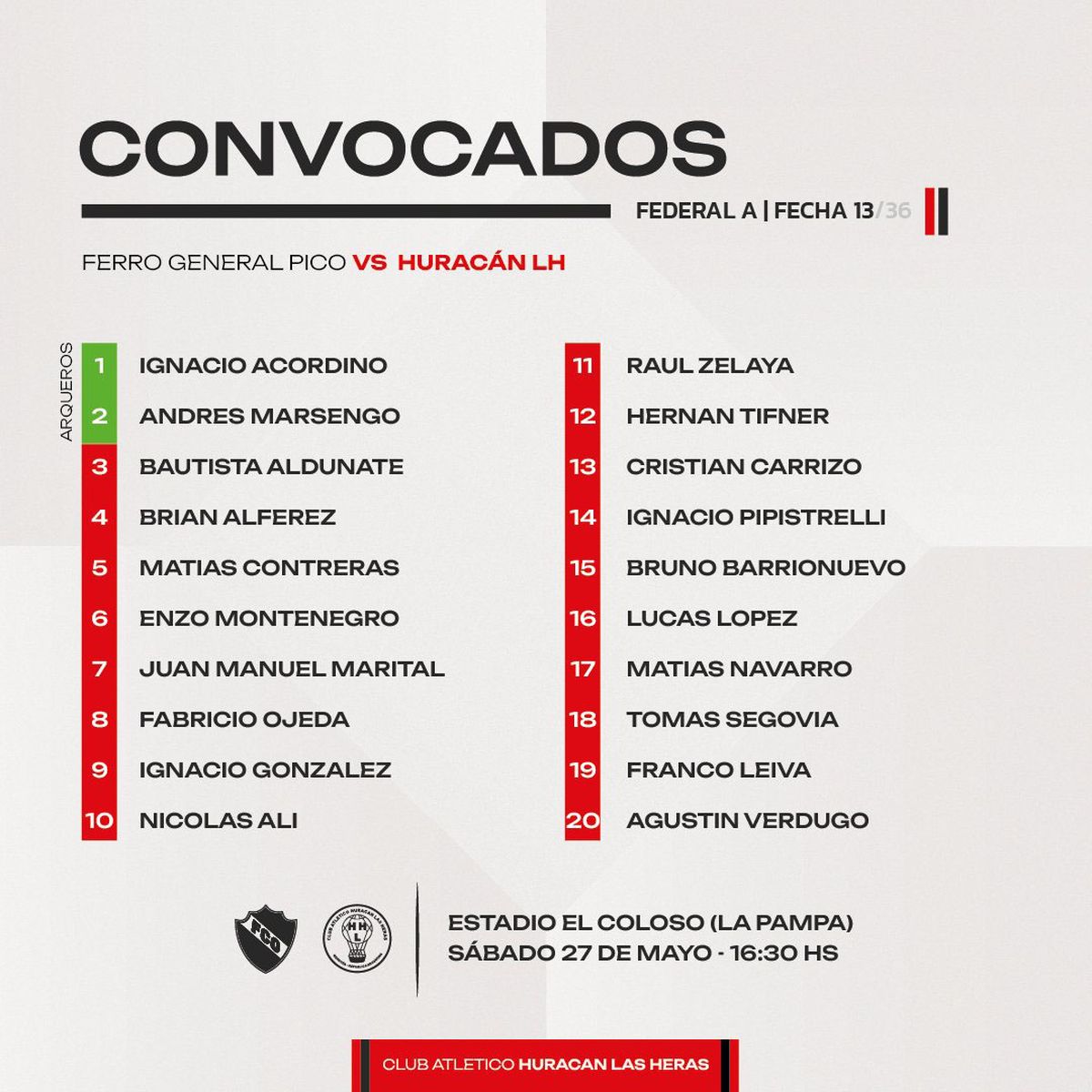 Huracán Las Heras jugará este domingo desde las 16.30 ante Ferro de General Pico, por la 13ª fecha de la Zona 2 del torneo Federal A. El cotejo contará con el arbitraje de Juan Nebbietti (Río Colorado).