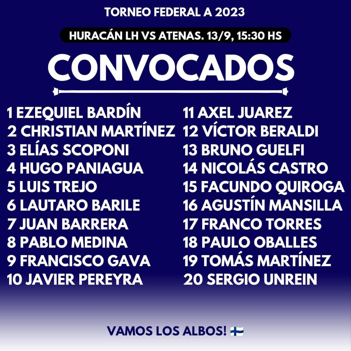 Atenas: Ezequiel Bardín; Luis Trejo, Hugo Paniagua, Pablo Medina y Elías Scoponi; Javier Pereyra, Axel Juárez, Juan Ignacio Barrera y Tomás Martínez; Agustín Mansilla y Paulo Oballes. DT: Darío Bringas.
