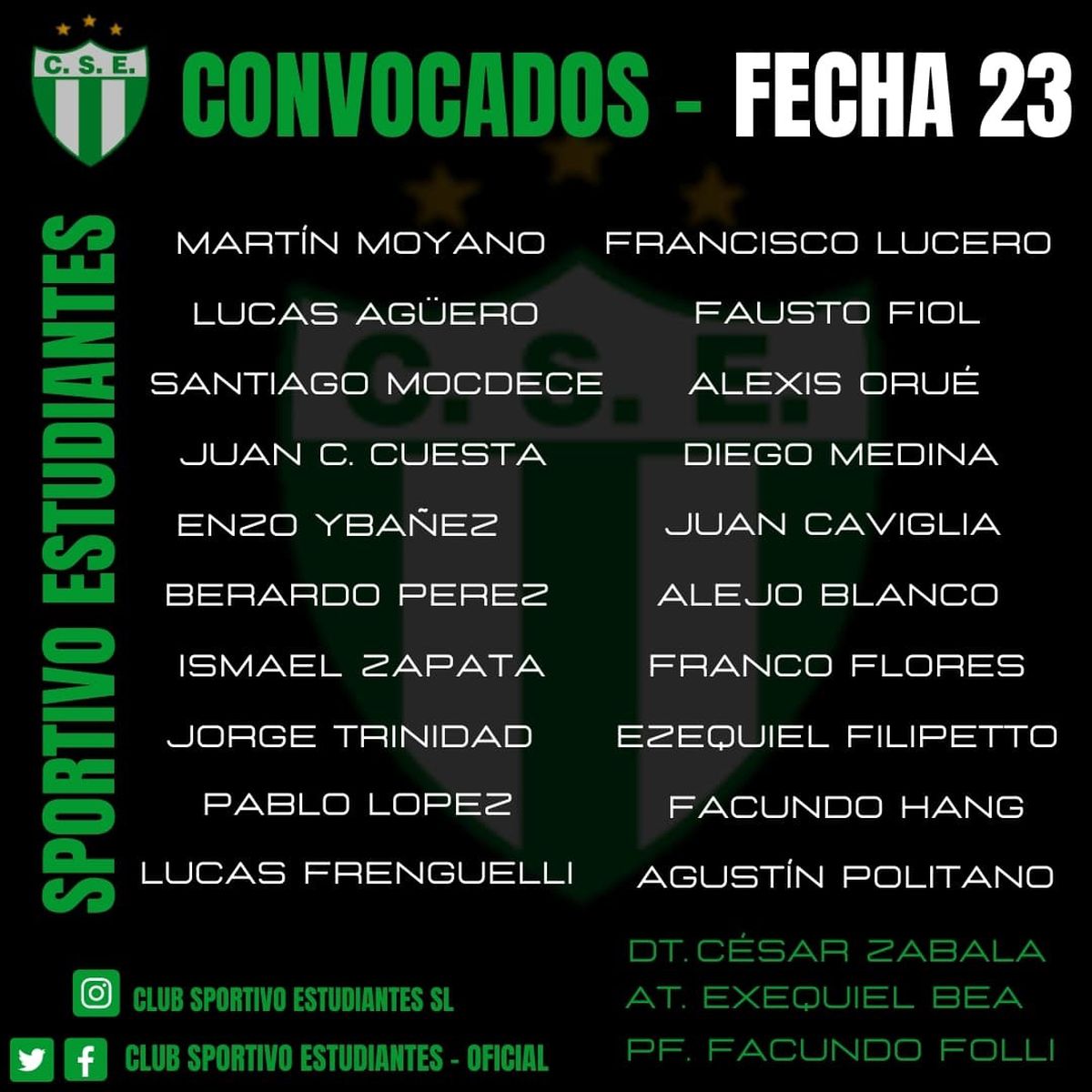 Estudiantes de San Luis: Juan Cruz Cuesta; Agustín Politano, Ezequiel Filippetto, Franco Flores y Luca Frenguelli; Pablo López, Juan Caviglia, Facundo Hang y Alejo Blanco, Jorge Trinidad y Lucas Agüero. DT: César Zabala.