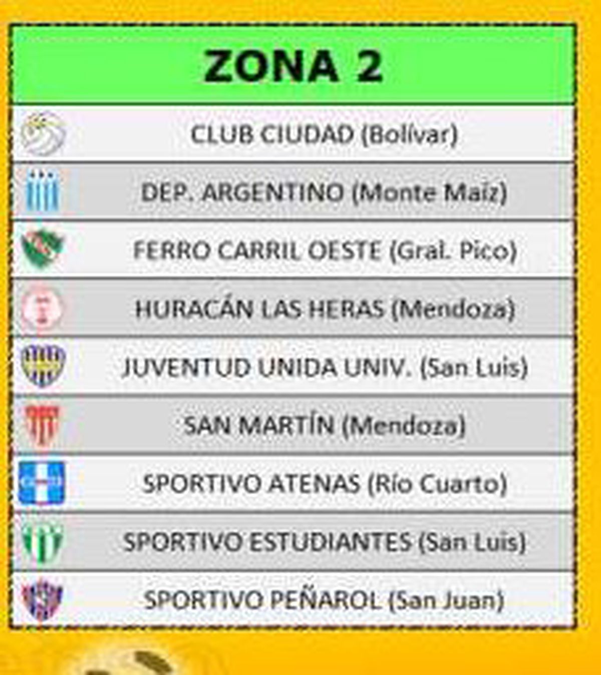 En el grupo que integran Huracán Las Heras y San Martín además participarán los siguientes equipos: Argentino (Monte Maíz), Atenas (Río Cuarto), Ciudad de Bolívar, Estudiantes (San Luis), Ferro (General Pico), Juventud Unida (San Luis) y Peñarol (San Juan).