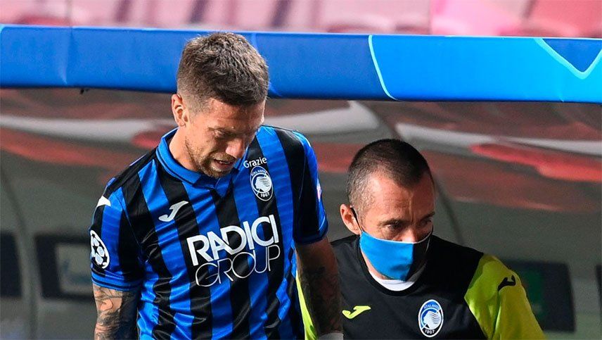 El argentino Alejandro Gómez, una de las grandes figuras del Atalanta, tuvo que abandonar el campo de juego del Estádio da Luz (Benfica) en el encuentro por los cuartos de final de la Champions League, ante el PSG.