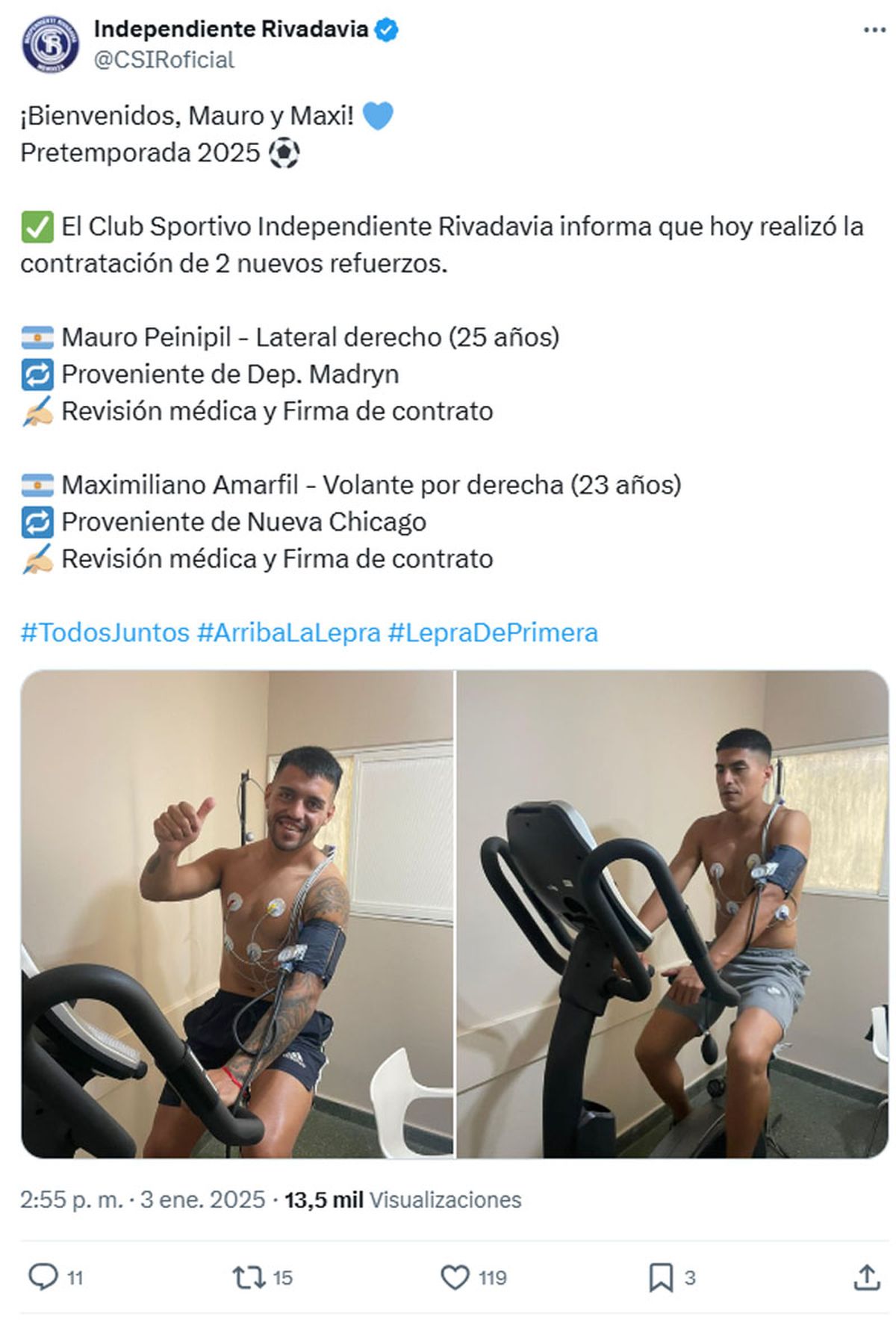 Independiente Rivadavia dio a conocer la contratación de dos nuevos refuerzos para la nueva temporada en la Liga Profesional