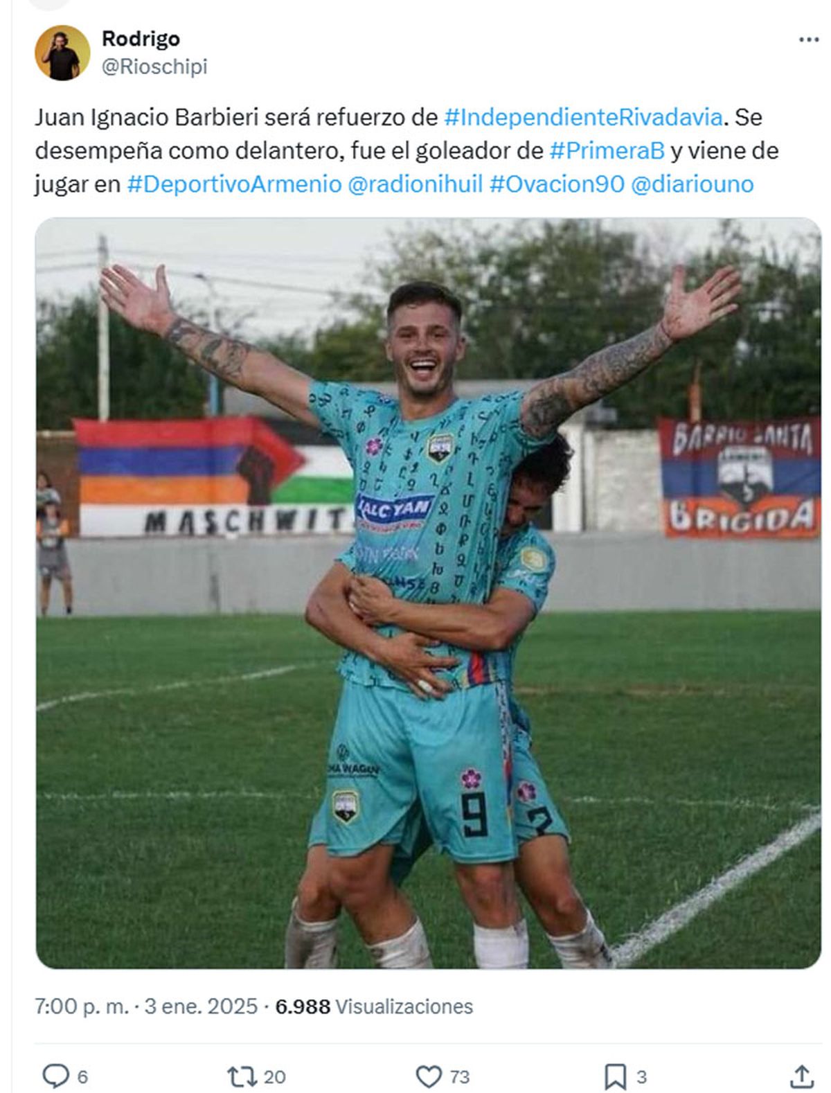 También se sumaría un delantero, que es nueve de área. Se trata de Juan Ignacio Barbieri, quien fue el goleador de la Primera B Metropolitana en el 2024 con Deportivo Armenio.