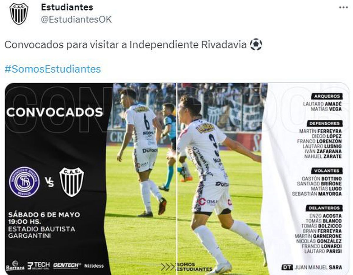 Por el lado de Estudiantes de Buenos Aires, viene de empatar sin goles ante el Deportivo Maipú, en el estadio Ciudad de Caseros. Fue el debut de su entrenador Juan Manuel Sara.