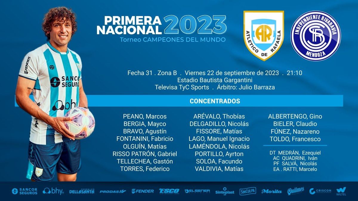 Independiente Rivadavia se presentará este viernes frente a Atlético de Rafaela, por la 31ra. fecha de la Zona B de la Primera Nacional.