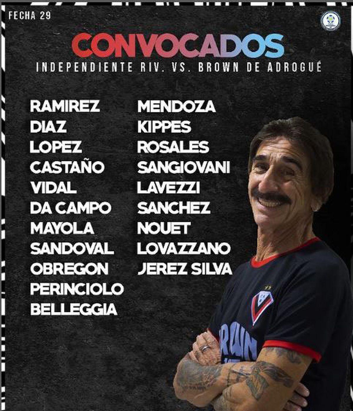 En la primera rueda Independiente Rivadavia y Brown de Adrogué igualaron sin goles. El cotejo se disputó en el estadio Lorenzo Arandilla, por la 12da fecha de la Zona B del torneo de la Primera Nacional, el 29 de abril pasado.