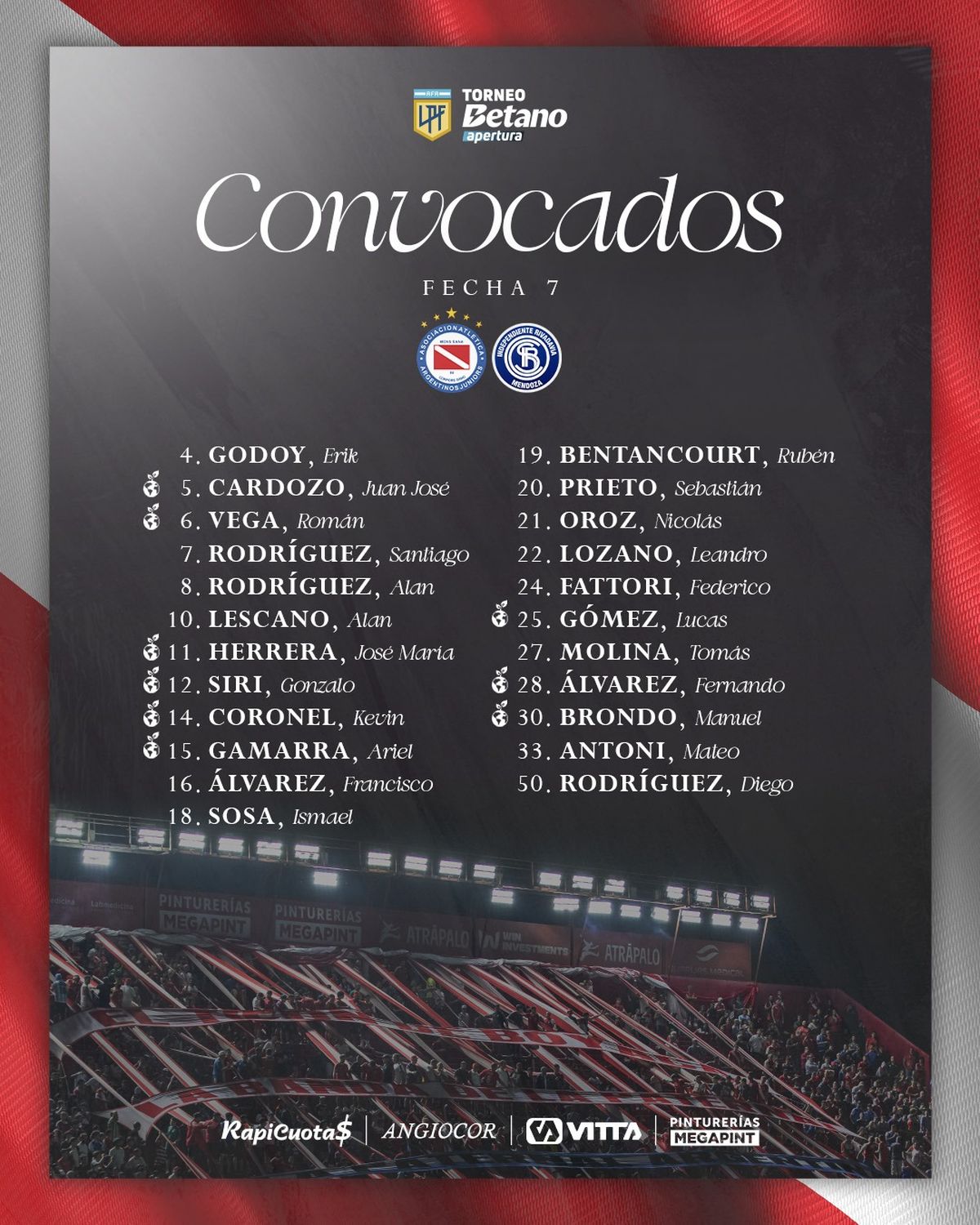 Argentinos Juniors: Diego Rodríguez; Leandro Lozano, Francisco Álvarez, Erik Godoy, Román Vega y Sebastián Prieto; Alan Lescano, Federico Fattori, Nicolás Oroz; Tomás Molina y José María Herrera. DT: Nicolás Diez.