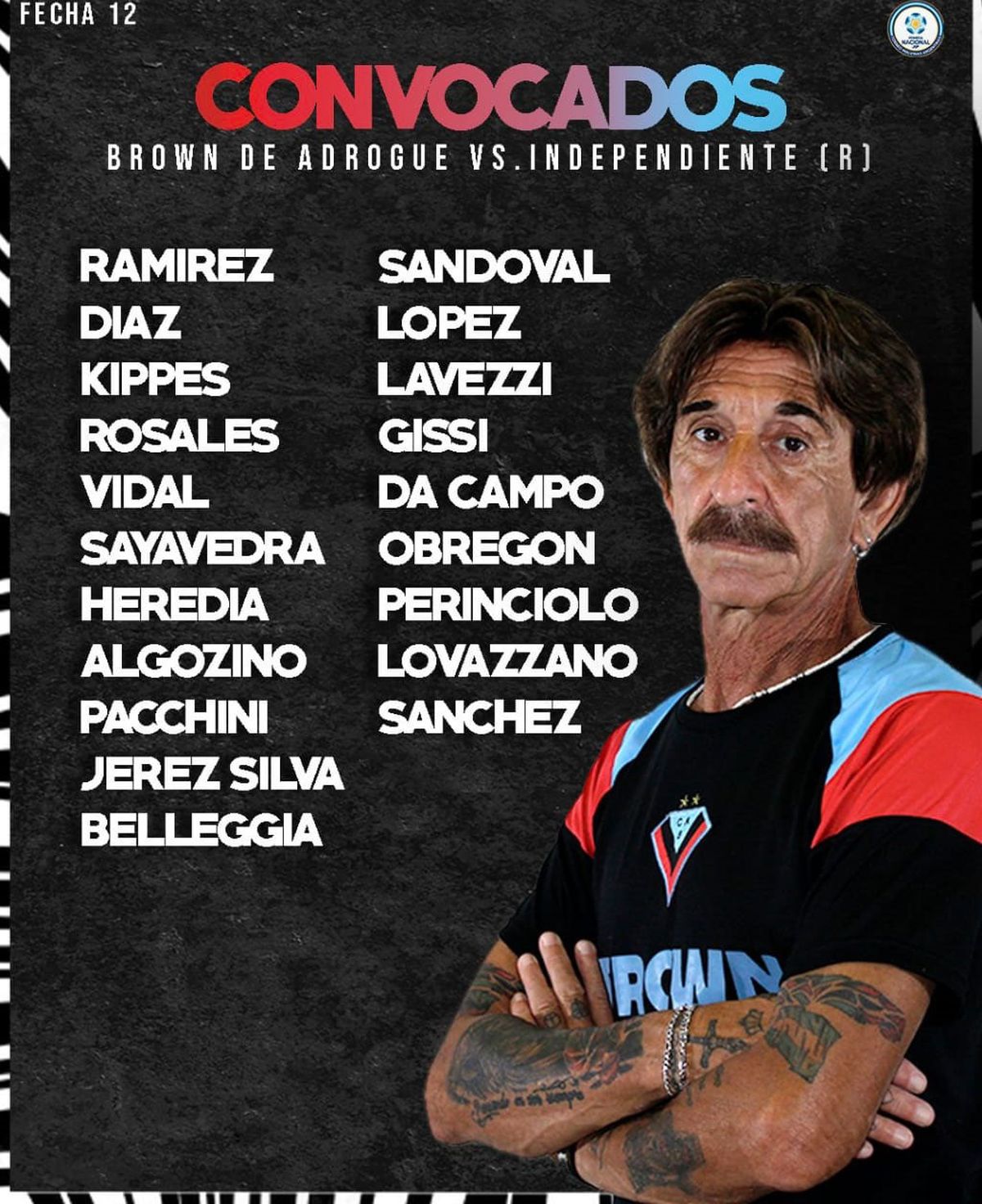 Brown: Horacio Ramírez; Mauricio Rosales, Ariel Kippes, Tomás López, Rodrigo Sayavedra; Lautaro Lovazzano, Luis Jerez Silva, Lautaro Belleggia, Franco Perinciolo; Agustín Lavezzi y Kevin Gissi. DT: Pablo Vicó.