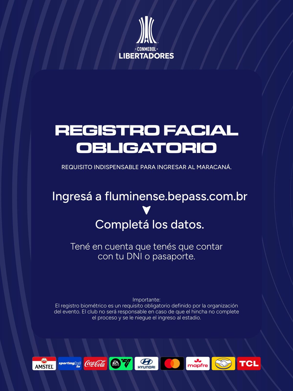 Al ingresar deberán cargar la foto del DNI y una foto del rostro ya que sin el registro biométrico no podrán ingresar al mítico estadio Maracaná.
