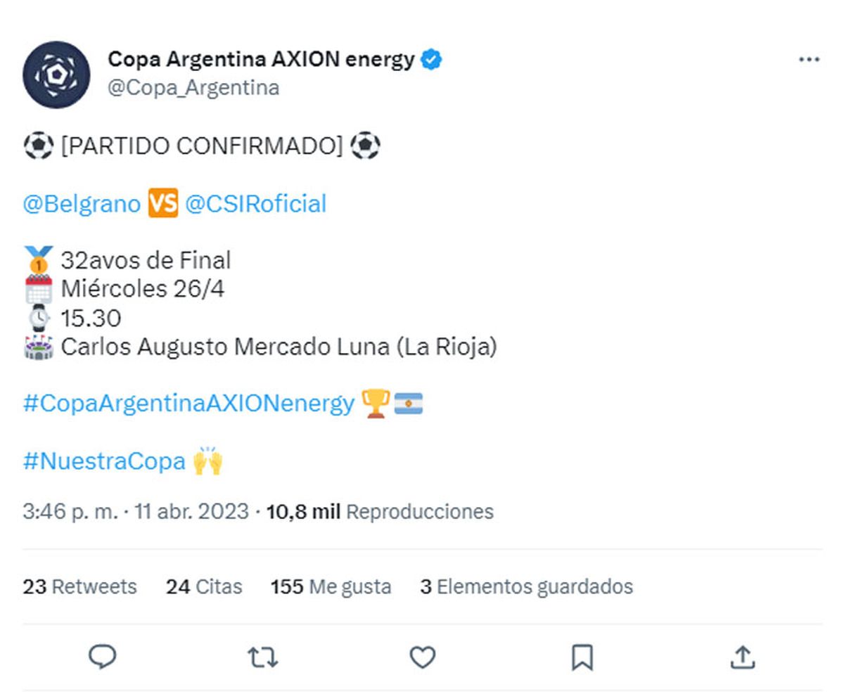Independiente Rivadavia se medirá con Belgrano de Córdoba, por los 32avos de final de la Copa Argentina. Así lo confirmó la competición en las redes sociales.